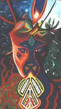 4.4.1999 „Pan “ Carola und Wolfgang Die Erde wehrt sich. So drücken es die Indianer aus. Pan spricht ein Machtwort. marsianische Energiewellen britzeln um das Wort. Wolfgang und mein Bild sieht aus wie ein Naturgott, über dessen Zunge ein Mantra fließt. AAA - April, Anfang, Alpha. |