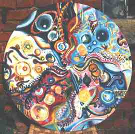 9.1.1999 „Plasma“ Wolfgang und Agnes malten Motive, die wie Zellflüssigkeit wirken (Plasma). Also den Mikrokosmos. |